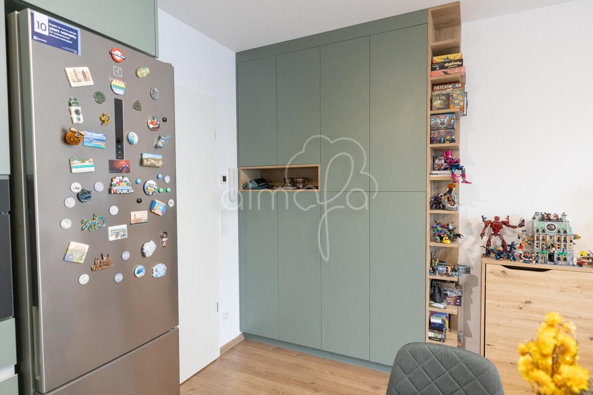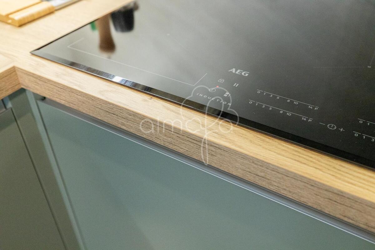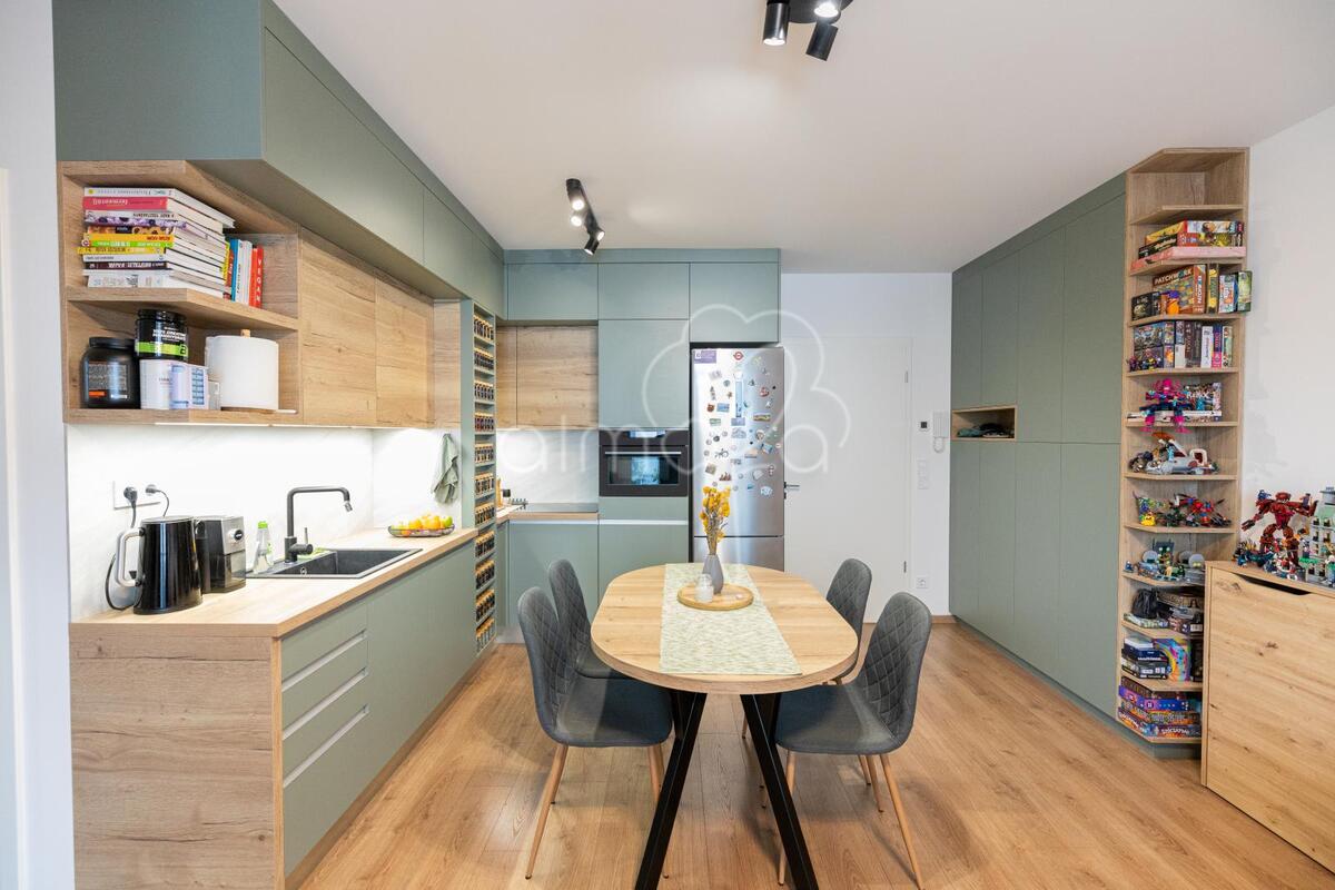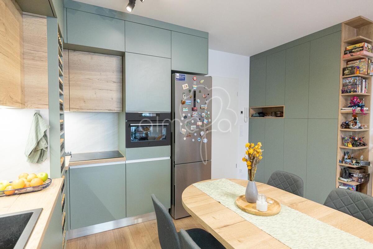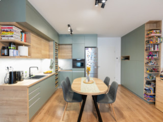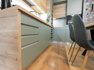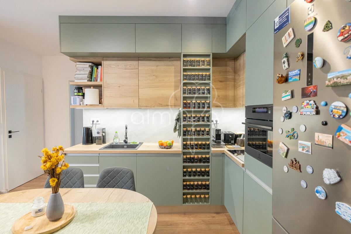 Zsályazöld és tölgy színű barna konyha harmóniája